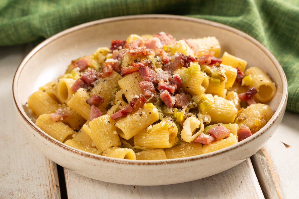 Les pâtes aux poireaux, pecorino et pancetta sont une recette née de la rencontre d'ingrédients simples, capables pourtant de se transformer en quelque chose de délicieusement surprenant.