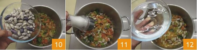 et les haricots 10. Salez 11, versez de l'eau jusqu'à couvrir les légumes 12,