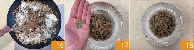 Il ne vous reste plus qu'à bien mélanger pour bien amalgamer tous les ingrédients 16, parfumez avec des feuilles de sauge 17 et votre plat est prêt à être servi! 18.