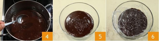 jusqu'à dissolution complète 4, transférez le mélange dans un bol 5 couvrez avec un film plastique 6 et laissez refroidir au réfrigérateur.
