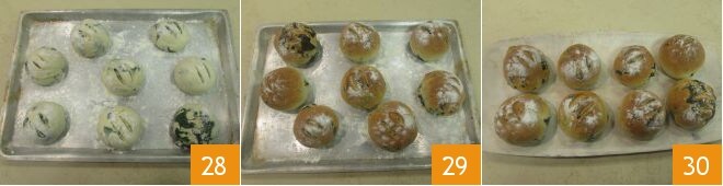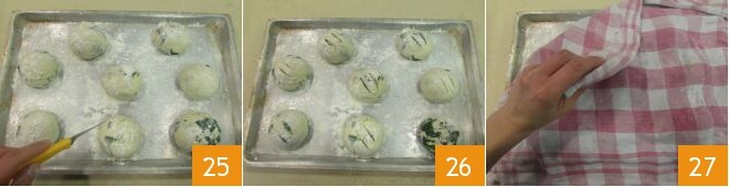et incisez deux entailles sur la surface de chaque petit pain (25-26). Couvrez avec un torchon 27