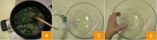 jusqu'à ce qu'elles soient fanées 4, puis laissez-les refroidir complètement. À ce stade, versez l'eau tiède dans un bol 4 et la levure 5