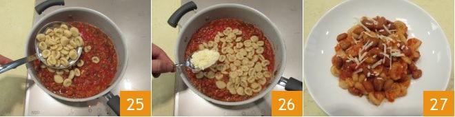 directement dans la casserole avec les haricots 25, assaisonnez avec le Grana Padano râpé 26 et servez les pisarei e fasò bien chauds avec quelques copeaux de Grana encore à votre goût 27!