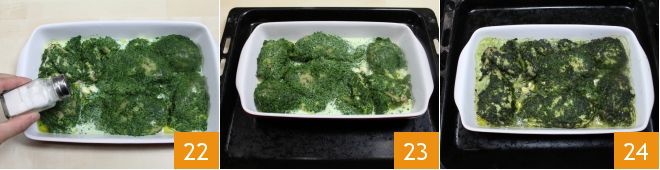 Salez et poivrez à votre goût 22 et enfournez dans un four statique déjà chaud à 180° pendant 35-40 minutes 23, si vous utilisez un four ventilé, faites cuire à 160° pendant 25/30 minutes. Lorsque le poulet sera légèrement doré en surface et que la sauce sera un peu réduite 24, votre poulet au vert est prêt à être servi bien chaud, accompagné d'un accompagnement de pommes de terre !