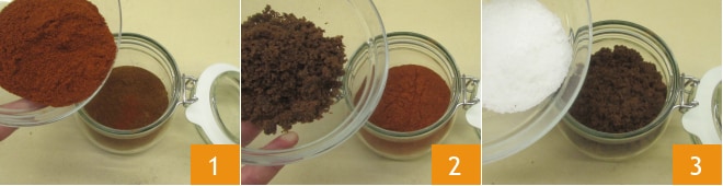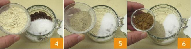 Ajoutez également l'ail en poudre 4, le poivre blanc 5 et la coriandre en poudre 6.