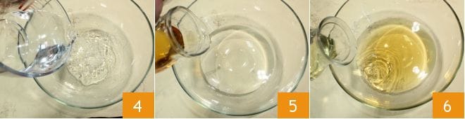 Préparez le carpione : dans un grand bol, versez l'eau 4, le vinaigre de vin blanc 5 et le vin blanc sec 6,