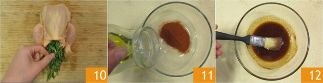 Enfin, ajoutez aussi le persil 10. Versez l'huile et le paprika dans un petit bol 11 et mélangez avec un pinceau 12.