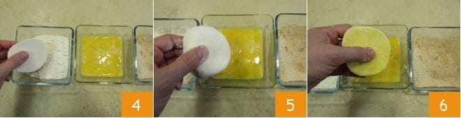 À ce stade, passez le primosale d'abord dans la farine 4, puis dans l'œuf (5-6).