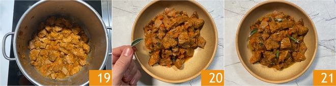 Si vous voulez un ragoût plus sec, laissez la cocotte sur le feu encore quelques minutes 19. Servez avec des feuilles de sauge fraîche 20 et votre ragoût en cocotte-minute est prêt à être servi 21 !