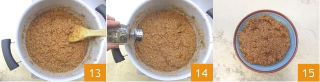 Poursuivez la cuisson, à feu doux, pendant 40 minutes, en remuant souvent pour éviter que le ragoût ne colle 13. Vers la fin de la cuisson, ajoutez du sel et du poivre 14 et mélangez soigneusement. Le ragoût de seitan est prêt à être utilisé dans vos recettes créatives !