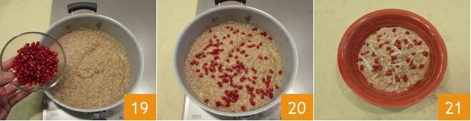 Vous pouvez ajouter les grains entiers de grenade (19-20) et servir votre risotto à la crème de poireaux et grenade fraîchement préparé 21 !