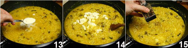 Avant de servir le risotto à la citrouille, champignons et taleggio, donnez une légère pincée de poivre noir et de muscade 15.