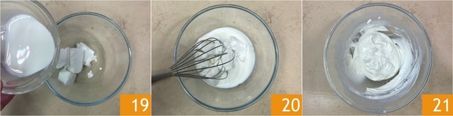Dans un bol, mettez le fromage de chèvre et ajoutez le lait 19, mélangez avec un fouet à main 20 jusqu'à obtenir une crème assez fluide 21. Si elle est trop épaisse, vous pouvez ajouter un peu plus de lait.