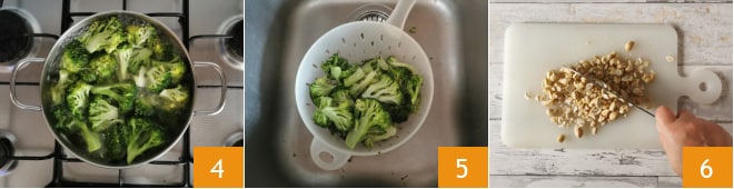 Cuisez pendant environ 20 minutes 4. Enfin, égouttez les brocolis avec une passoire 5. Ensuite, hachez grossièrement les noix de cajou avec un couteau 6.