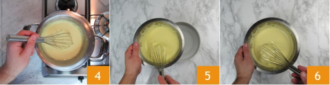 Vous devrez fouetter énergiquement pendant environ une demi-heure, en portant la température entre 70° et 75° : utilisez un thermomètre de cuisine pour être sûr 4. Dès que vous avez obtenu un mélange mousseux et plus dense, placez le bol dans un autre plus grand avec de l'eau froide 5. Continuez à mélanger jusqu'à ce qu'il soit refroidi, puis mettez le bol au réfrigérateur pour le faire raffermir complètement 6.