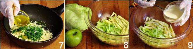 Dans cette recette, les rustichelle seront accompagnées d'une salade crémeuse aux pommes vertes.