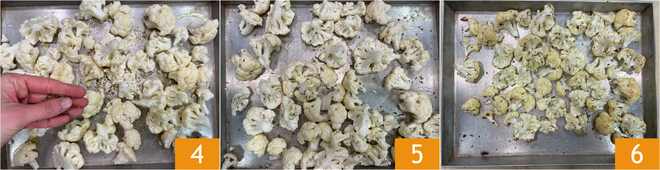Ajoutez aussi le cumin 4 et votre chou-fleur est prêt 5 à cuire dans un four statique, préchauffé à 200°, pendant environ 30 minutes ; laissez-le refroidir lorsqu'il est prêt 6.