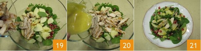 et le poulet 19, arrosez de sauce à la moutarde 20, mélangez et servez immédiatement votre salade de poulet et pommes 21 !