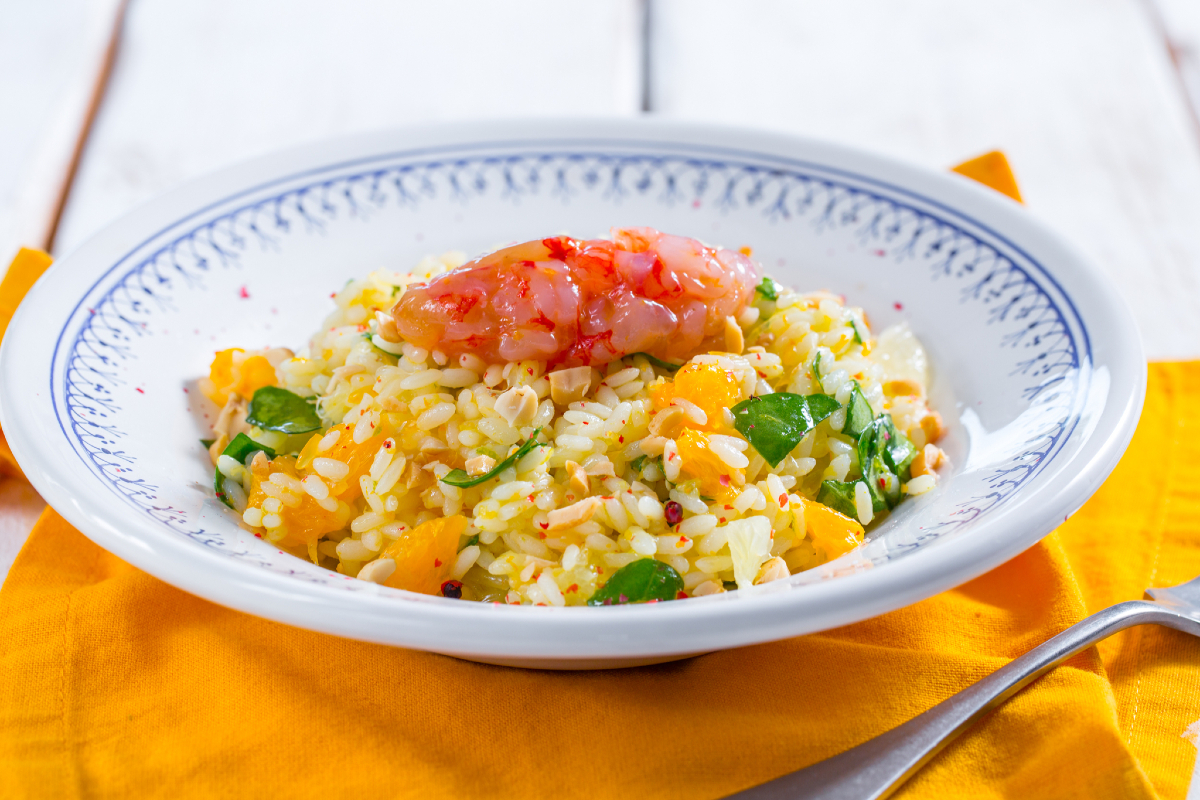 Accueillons la saison estivale avec un plat unique riche et authentique : la salade de riz aux agrumes, jeunes pousses d'épinards et crevettes, si fraîche et colorée qu'elle vous séduira dès la première bouchée. Nous avons choisi les crevettes rouges au goût délicat à associer à un assaisonnement spécial aux notes d'agrumes, réalisé avec un mélange d'oranges, de citrons et de citron vert, un concentré de goût et de vitamine C ! Simple mais en même temps raffiné, cette fraîche Salade de riz est parfaite pour vous rafraîchir pendant les journées les plus chaudes, qui réclament de la légèreté à table. Venez découvrir notre recette simple et appétissante !