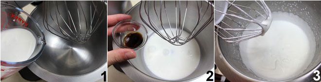 Pour préparer les sandwichs gaufres à la Nutella, placez la crème dans un batteur sur socle 2, ou dans un bol, et ajoutez l'extrait de vanille 2. Battez la crème à moitié avec le fouet du batteur sur socle 3, ou avec un batteur électrique. La crème doit atteindre une consistance douce.