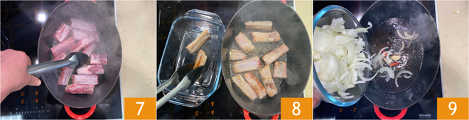 Faites bien dorer pendant 2-3 minutes de chaque côté 7. Une fois dorées, retirez les côtelettes de la casserole et mettez-les de côté 8. Baissez le feu et dans la même casserole, ajoutez le piment, l'ail et l'oignon 9.