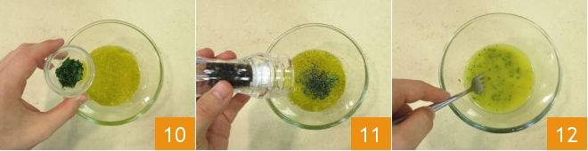 le persil haché 10, le sel et le poivre 11 et mélangez bien avec une fourchette 12.