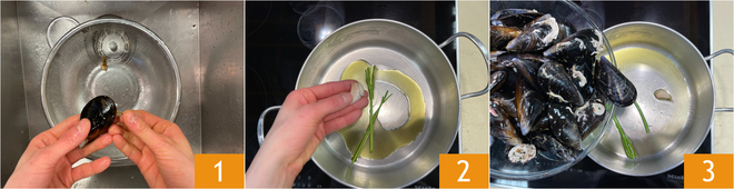 Pour préparer la soupe de haricots blancs et de moules, commencez par Comment nettoyer et ouvrir les moules : enlevez le byssus et rincez-les sous l'eau courante, en frottant la coquille avec une laine d'acier 1. Dans une casserole, faites chauffer la moitié de l'huile avec les tiges de persil et l'ail pelé 2. Quand le fond est chaud, ajoutez les moules 3.