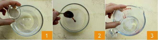 Pour préparer le strudel de pain farci à la saucisse, commencez par la pâte : mettez la farine tamisée dans un bol (en alternative à la farine manitoba, vous pouvez utiliser de la farine type 0). Ensuite, divisez la quantité d'eau et dans la moitié, dissolvez la levure 1. Ajoutez la cuillère à café de malt (ou de sucre) 2 et mélangez pour amalgamer les ingrédients. Dans l'autre moitié d'eau, dissolvez le sel 3.