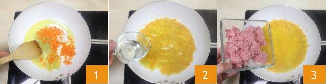 Pour réaliser les tagliatelles farcies, préparez les pâtes aux œufs (vous pouvez suivre la recette en Pâtes fraîches aux œufs (feuilletage et formats)) : mettez la farine sur un plan de travail, sous forme de fontaine, puis disposez au centre les œufs, ajoutez le sel et commencez à pétrir avec les mains, de l'extérieur vers l'intérieur, en incorporant toute la farine présente sur le plan de travail : vous devrez travailler la pâte, avec patience et énergie, jusqu'à obtenir une pâte lisse et compacte. Enveloppez alors la pâte obtenue dans du film plastique et laissez-la reposer environ 1 heure dans un endroit frais et sec. Pendant ce temps, réalisez un soffritto de céleri, d'oignon et de carotte en faisant revenir ces légumes, finement hachés, avec un peu d'huile d'olive extra vierge 1 (pour en savoir plus sur la préparation du soffritto, Comment faire le soffritto ; si nécessaire, ajoutez un peu d'eau pendant la cuisson pour éviter que le tout ne brûle 2. Lorsque tous les légumes sont bien dorés, ajoutez la viande hachée et faites-la cuire à feu vif pendant 5 minutes 3,