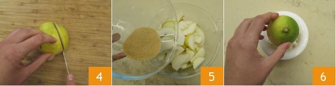Coupez-les en fines tranches (moins d'un demi-centimètre) 4. Dans un bol, mélangez les poires tranchées et 50 g de sucre de canne 5. Pressez le jus d'un demi-citron 6