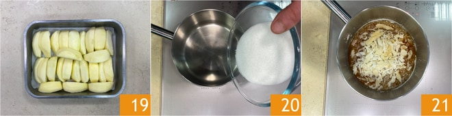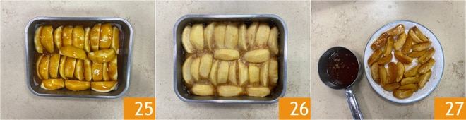 Passez dans un four statique préchauffé à 180° pendant 30-40 minutes 25. Sortez du four 26 et séparez le caramel des pommes 27.
