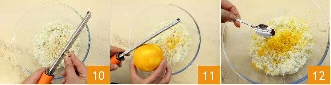aromatisez avec la noix de muscade râpée 10, le zeste d'orange râpé 11, la poudre de clous de girofle 12