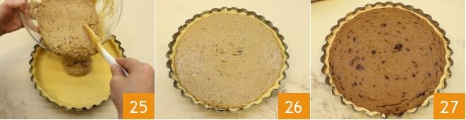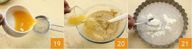 filtrez-le à travers une passoire pour retenir les pépins 19 et incorporez également le jus à la pâte 20. Beurrez et farinez un moule d'un diamètre de 26 cm 21