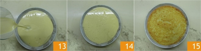 Versez la moitié du mélange dans chaque plaque 13 14 et faites cuire dans un four statique préchauffé à 250° pendant environ 20 minutes, jusqu'à ce qu'une belle croûte se forme dessus 15.