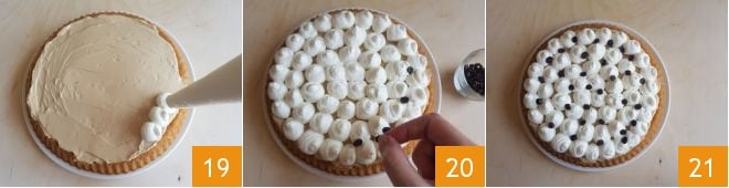 Pressez ensuite des petites pointes sur toute la surface de la tarte 19 et décorez avec des grains de café 20. La tarte molle au café est prête à être servie 21.