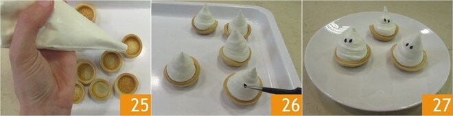 Remplissez chaque tartelette avec un petit dôme de mousse au Grana Padano DOP 25, puis créez les yeux avec des graines de sésame 26. Vos tartelettes au Grana Padano sont prêtes à être servies 27!