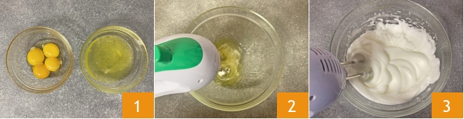 Pour préparer le tiramisù avec biscuits Pan di Stelle®, commencez par séparer les jaunes des blancs d'œufs 1. Montez ces derniers en neige avec un fouet 2 pour obtenir une neige bien ferme 3.