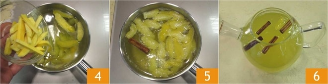 Ajoutez également le gingembre 4 et le bâton de cannelle et portez à ébullition pendant 10-15 minutes 5. Une fois ce temps écoulé, filtrez la boisson et dégustez la tisane au gingembre et citron bien chaude 6.