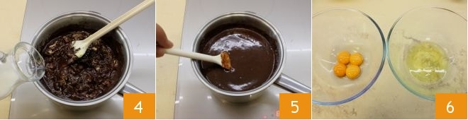Mélangez avec une cuillère en bois et, lorsqu'il est fondu, versez le lait 4. Mélangez encore jusqu'à obtenir une sauce épaisse et sans grumeaux 5. Pendant que le chocolat refroidit, séparez les jaunes des blancs d'œufs 6