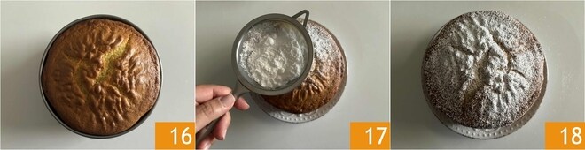 Le gâteau à la crème est prêt, sortez-le du four et laissez-le refroidir 16, une fois froid, il ne vous reste plus qu'à le transférer sur une assiette et à le servir avec une pincée de sucre glace 17 18.