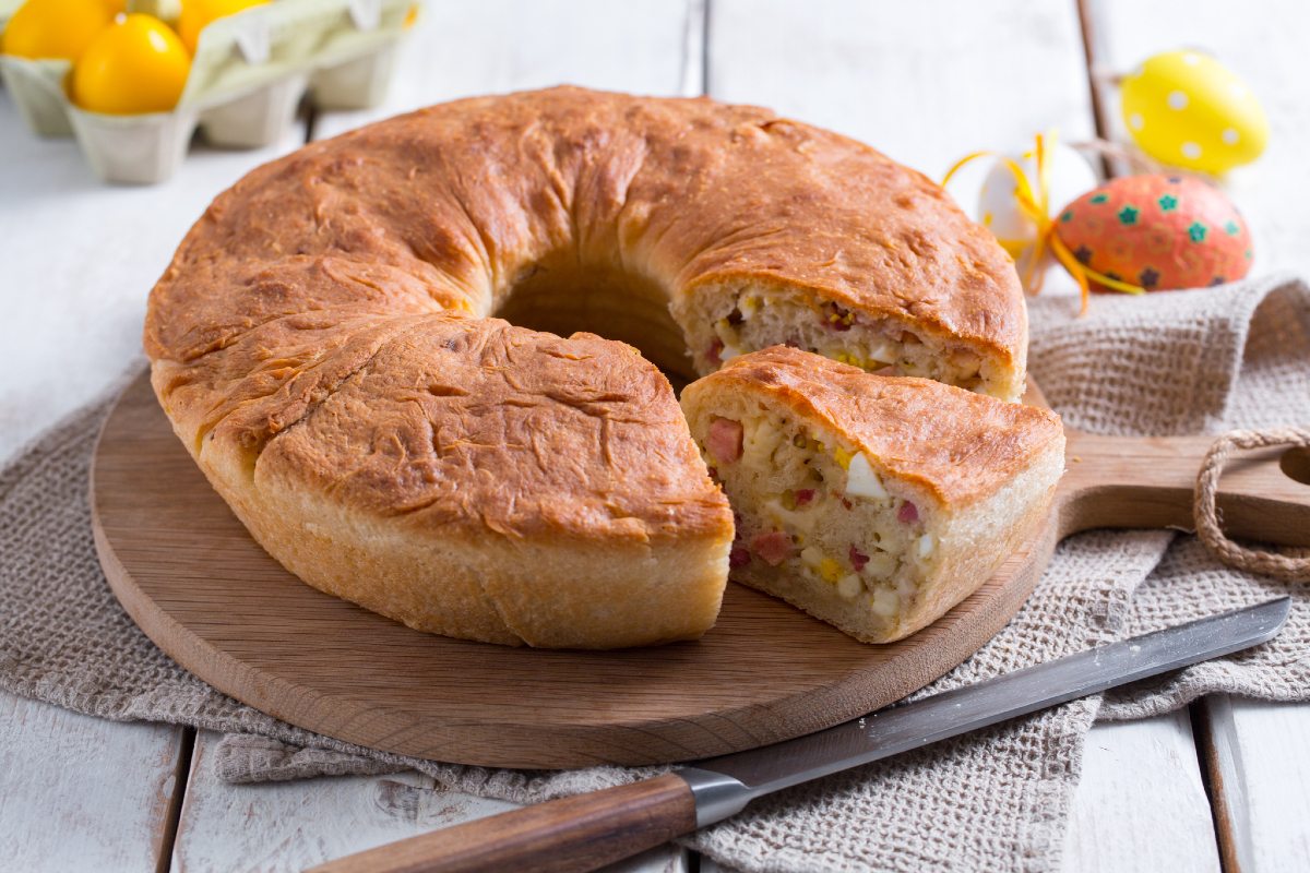 Le tortano est un Couronne salée d'origine campanienne, réalisée surtout pendant la période de Pâques, avec la pizza chiena rustique napolitaine et les versions plus originales comme la Pastiera salata. Tout comme le célèbre casatiello, c'est un pain rustique, préparé avec une pâte à pain contenant du saindoux et enrichie de divers charcuteries et fromages. Autrefois, il était effectivement réalisé comme un "vide-frigo" pour réutiliser ce qui restait des jours de fête. Contrairement au casatiello, où les œufs sont placés dessus comme décoration, dans cette recette, les œufs durs sont utilisés pour enrichir la garniture, avec des ciriols, du salami et des fromages, selon la tradition. Le tortano est une recette napolitaine préparée avec des ingrédients simples qui créent une combinaison de saveurs irrésistible, idéale à proposer dans le menu de Pâques ou pour le pique-nique du lundi de Pâques qui accompagne, comme d'habitude, la traditionnelle Pastiera napolitaine.