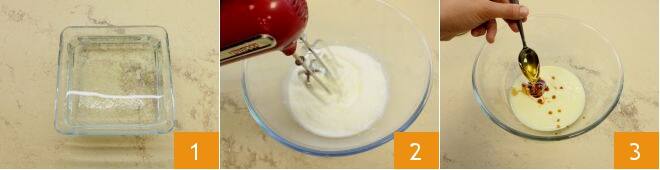 Pour préparer les tranches de cacao au lait, commencez par préparer la crème au lait : mettez la gélatine en feuilles à tremper dans l'eau froide pendant au moins 10 minutes 1. Montez 300 g de crème fraîche liquide avec un batteur électrique 2. Dans un autre petit bol, versez le lait concentré à température ambiante. Ajoutez l'extrait de vanille et le miel et mélangez 3.