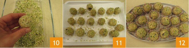 Roulez les boules dans la farine de fruits secs 10 et disposez-les sur une assiette ou un plateau recouvert de papier sulfurisé. Laissez refroidir vos truffes au réfrigérateur pendant 30 minutes. Après ce temps, les truffes seront prêtes à être servies dans des caissettes en papier 12 !