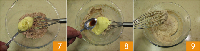 Ajoutez la mayonnaise au mélange 7, puis aussi la sauce Worcester 8, mélangez pour obtenir une sauce veloutée et homogène 9. Mettez de côté.