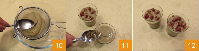 Quand vous aurez obtenu un mélange crémeux, passez-le au tamis pour rendre le velouté plus fluide 10. Versez le velouté dans des verrines ou des terrines individuelles et décorez-les avec le cotechino et les lentilles cuites mises de côté précédemment 11. Voilà, votre velouté de lentilles au cotechino croustillant est prêt 12 !