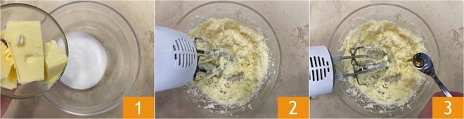 Pour préparer le Victoria Sandwich, dans un grand bol versez le sucre et le beurre mou 1. Commencez à travailler le mélange avec les fouets électriques jusqu'à obtenir une crème claire, légère et bien montée 2. Ajoutez l'extrait de vanille 3 et travaillez encore la préparation.