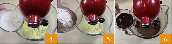 versez le yaourt en continuant de battre 4, une fois celui-ci absorbé par le mélange, ajoutez également le Nesquik avec la farine tamisée et mélangez le tout 5. Ajoutez ensuite le chocolat noir que vous aurez préalablement fondu au micro-ondes, battez à nouveau pour bien amalgamer le tout 6
