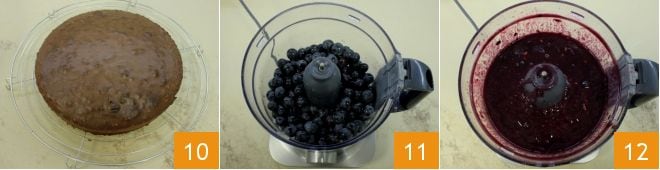 Démoulez-le ensuite et laissez-le refroidir complètement sur une grille 10. Vous pouvez maintenant vous consacrer à la garniture du zuccotto, la glace au raisin fraise, dont vous pouvez consulter la recette aussi Glace au raisin-fraise en cornet. Lavez les grains de raisin fraise sous l'eau courante, placez-les dans le mixeur 11 et mixez-les 12.