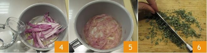couvrez-les d'eau 4 et laissez-les mijoter pendant environ 15 minutes jusqu'à ce qu'ils soient tendres 5. Entre-temps, hachez le thym, la sauge et le romarin 6 et réservez.