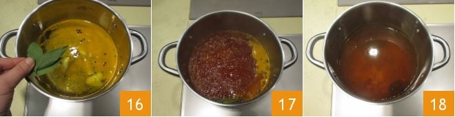 le zeste d'un demi-citron et les feuilles de laurier 16. Portez le tout à ébullition 17 et, dès que l'eau est à température, réduisez le feu pour faire mijoter l'eau et laissez cuire pendant 30 minutes 18.